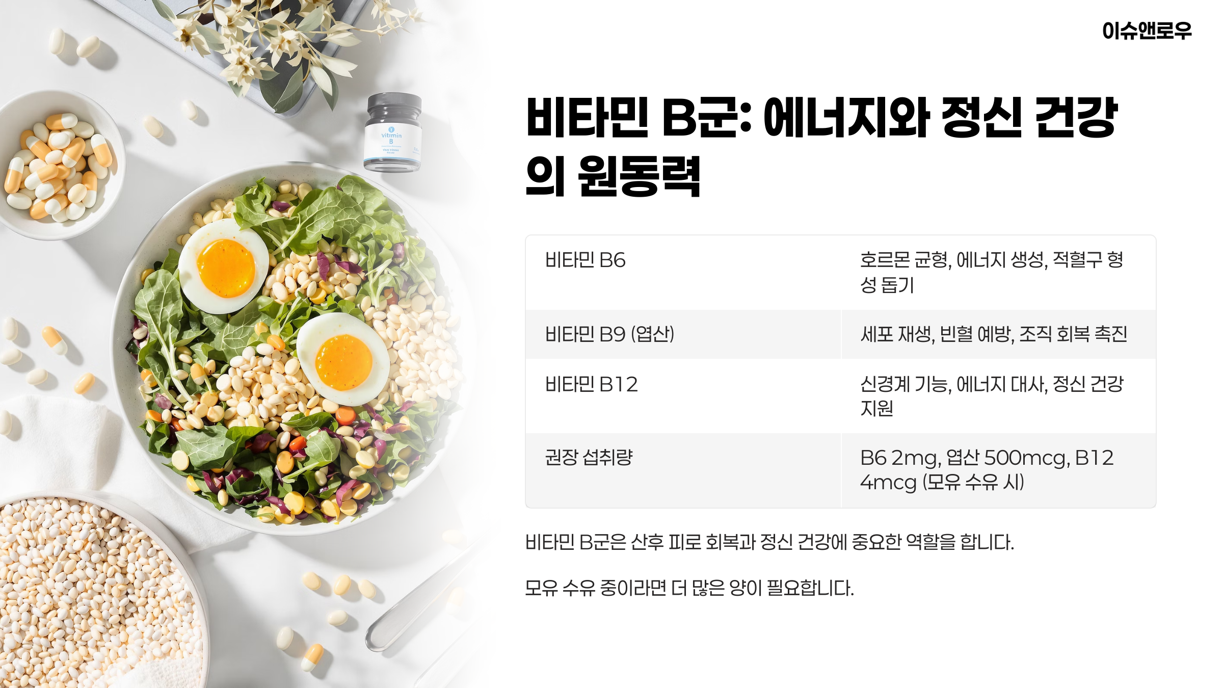 비타민B군은 에너지 생성에 필수예요.