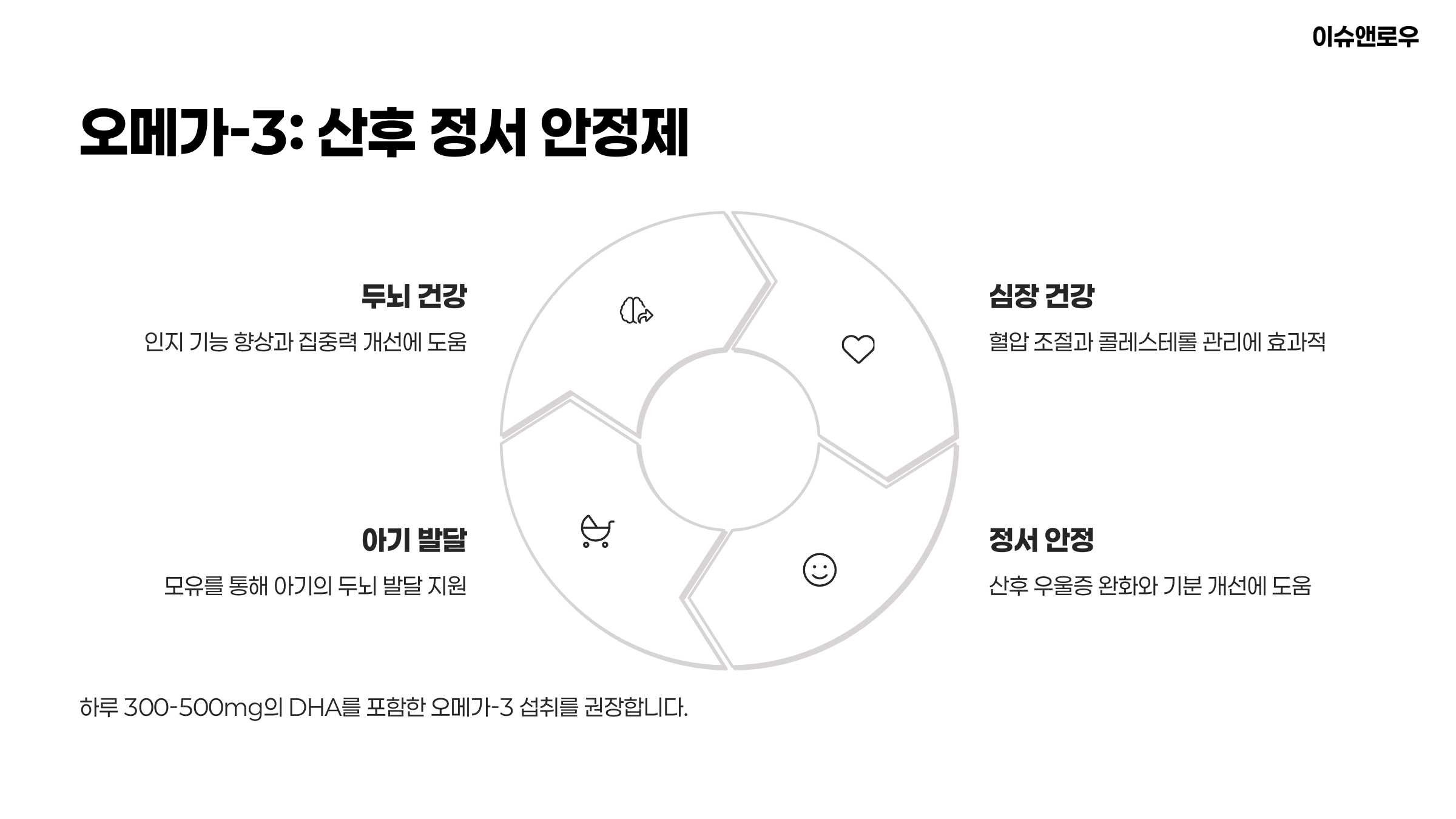 EPA와 DHA 중 특히 DHA는 산후 회복에 핵심이에요.