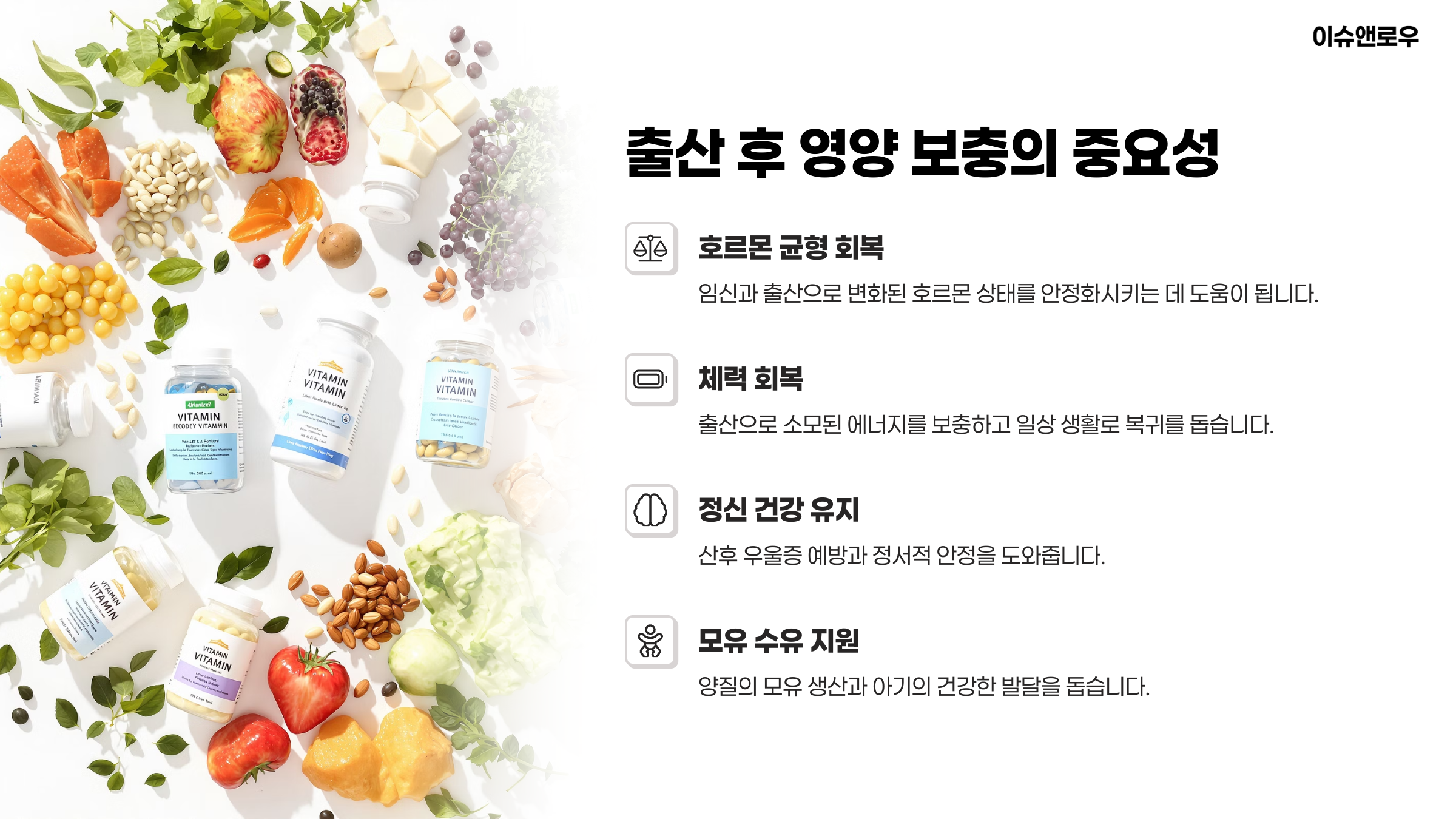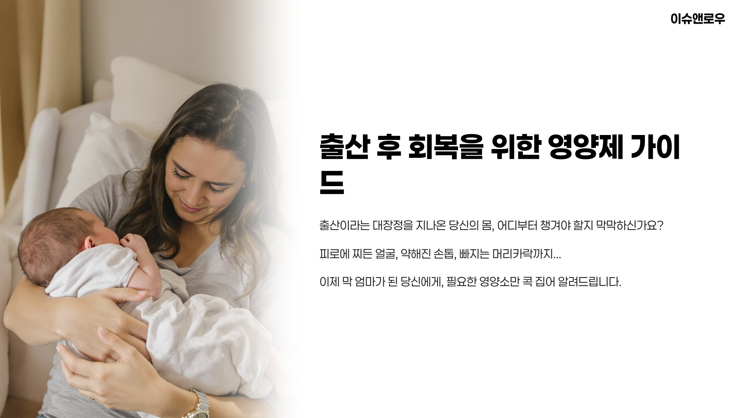 산후 회복의 첫걸음, 바로 ‘제대로 된 영양 보충’에서 시작됩니다.