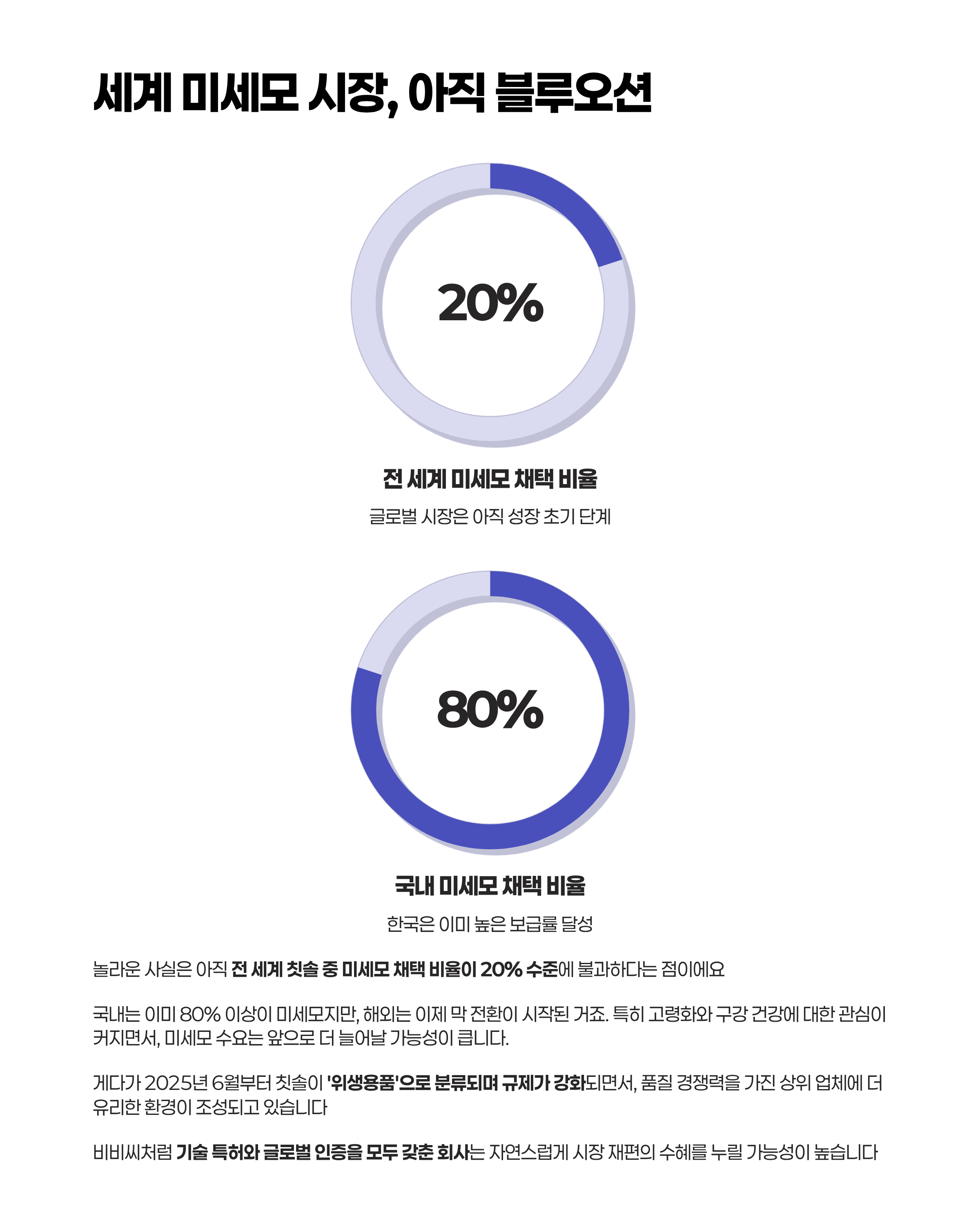 놀라운 사실은 아직 전 세계 칫솔 중 미세모 채택 비율이 20% 수준에 불과하다는 점이에요