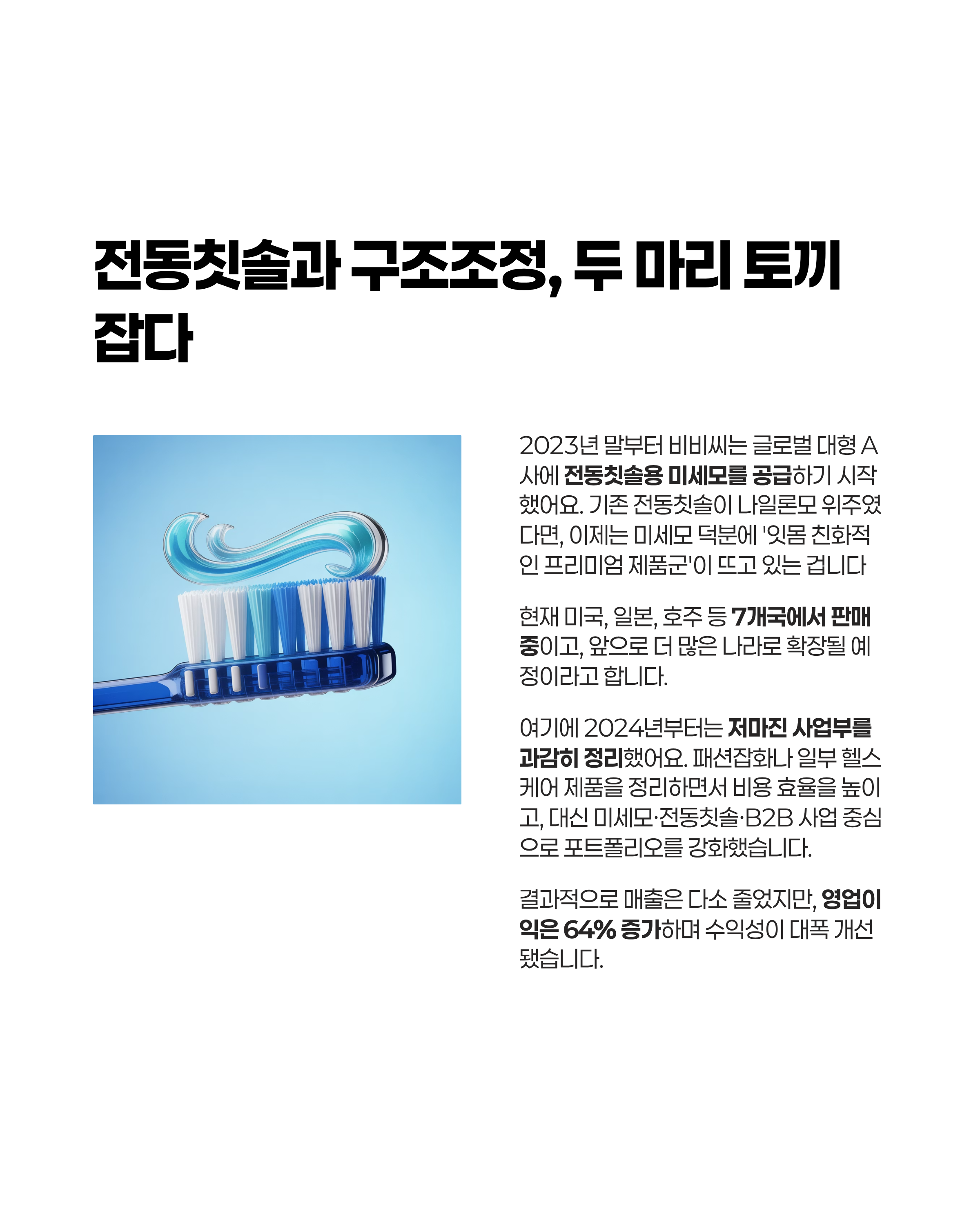 전동칫솔과 구조조정, 두 마리 토끼 잡다