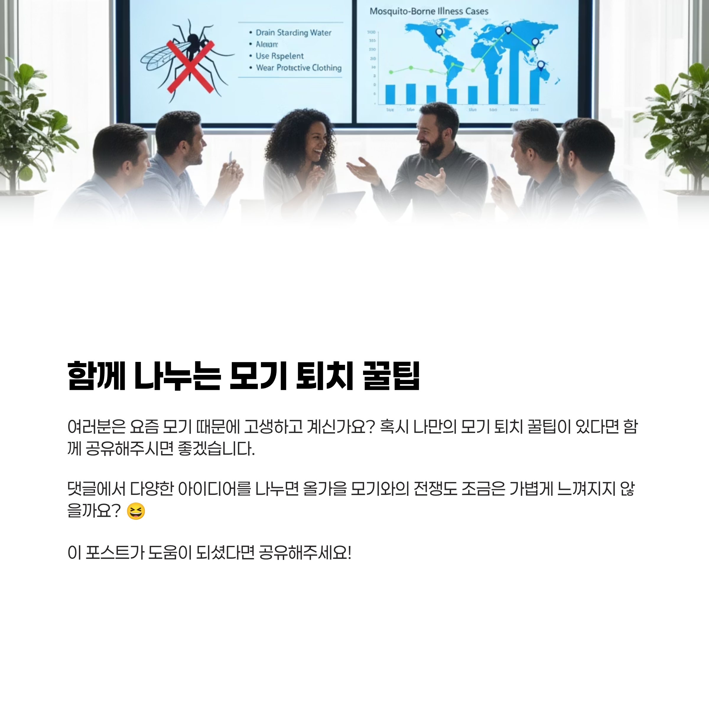 혹시 나만의 모기 퇴치 꿀팁이 있다면 함께 공유해주시면 좋겠습니다.