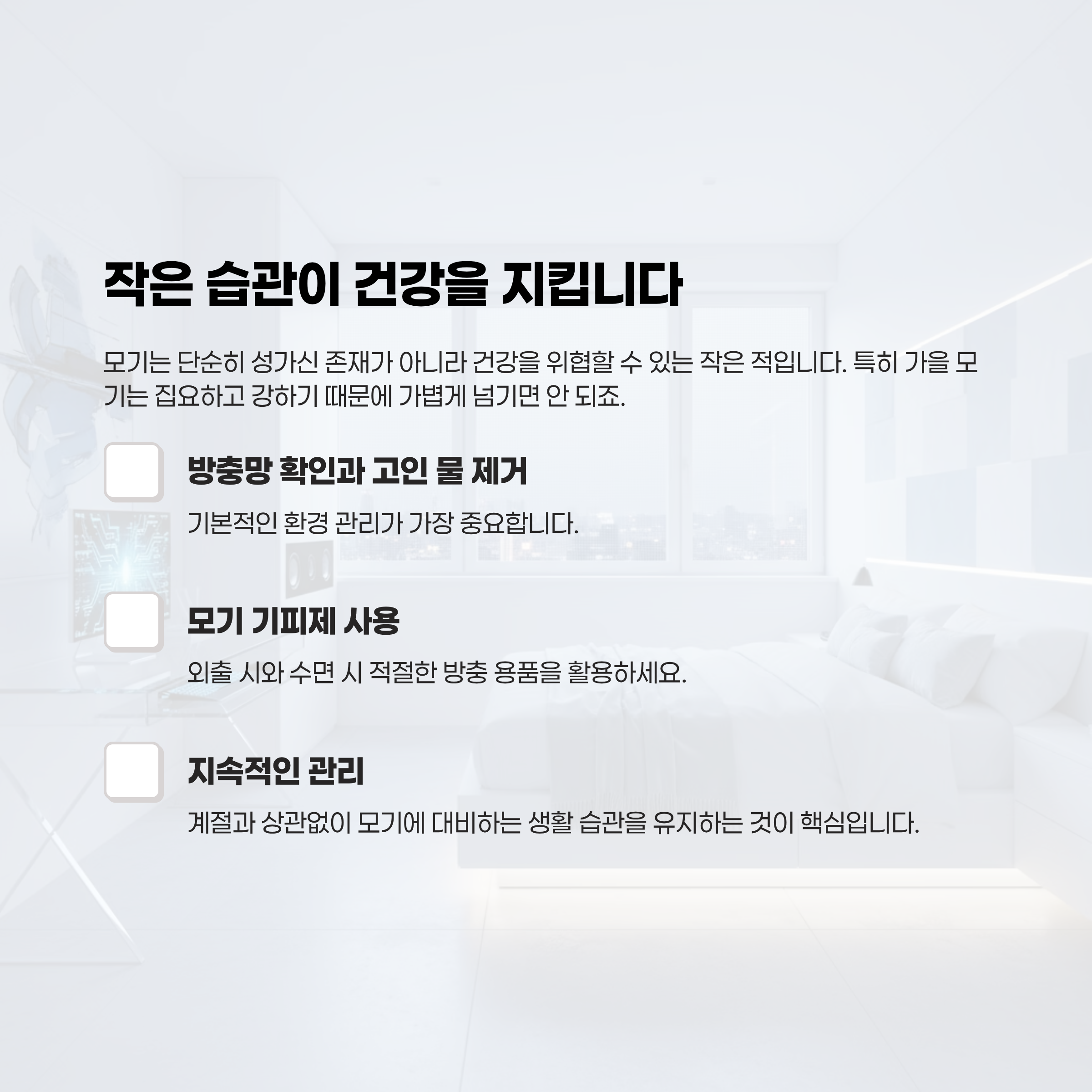 특히 가을 모기는 집요하고 강하기 때문에 가볍게 넘기면 안 되죠.