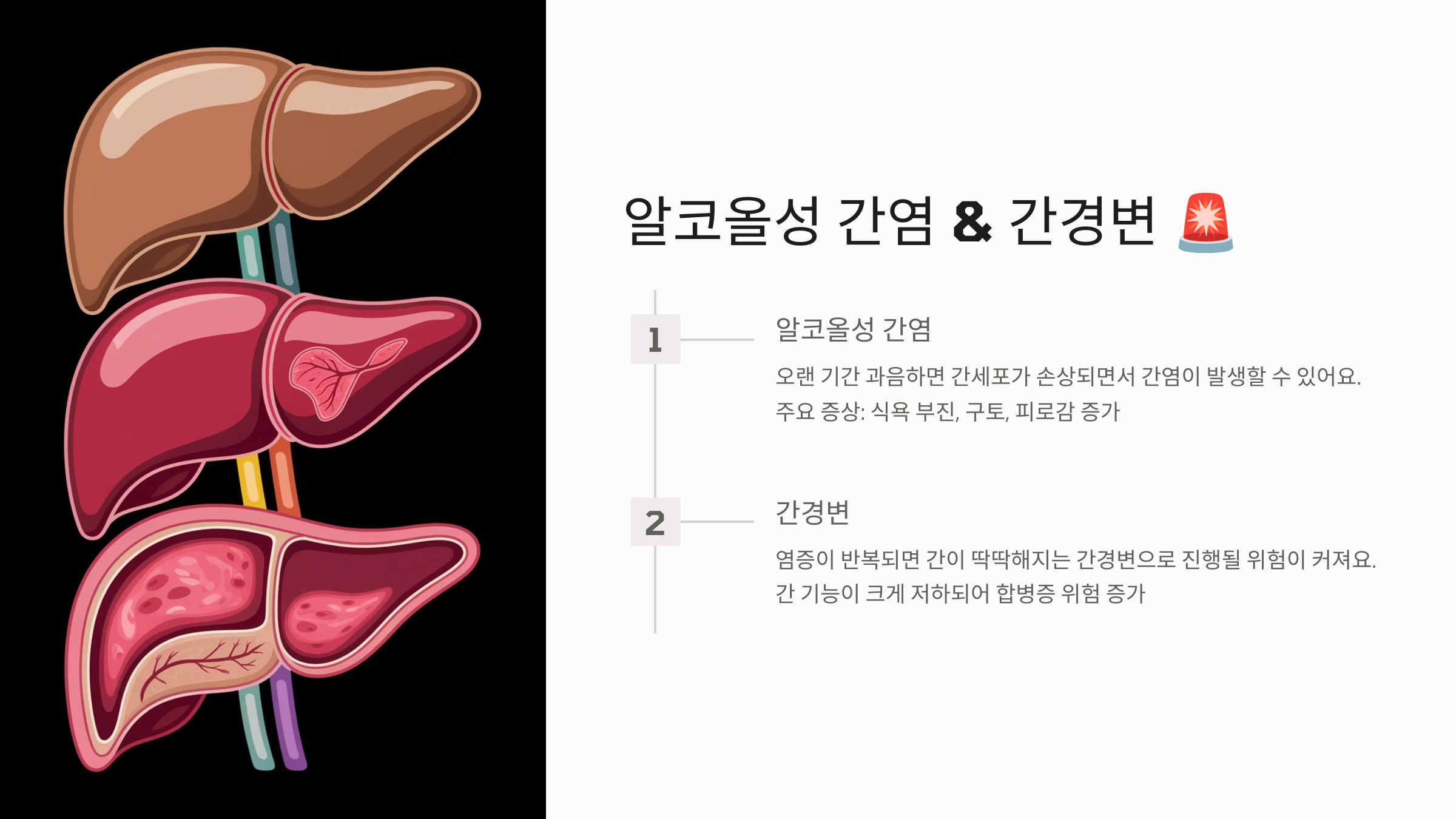 ## 3️⃣ 알코올성 간염 & 간경변 🚨