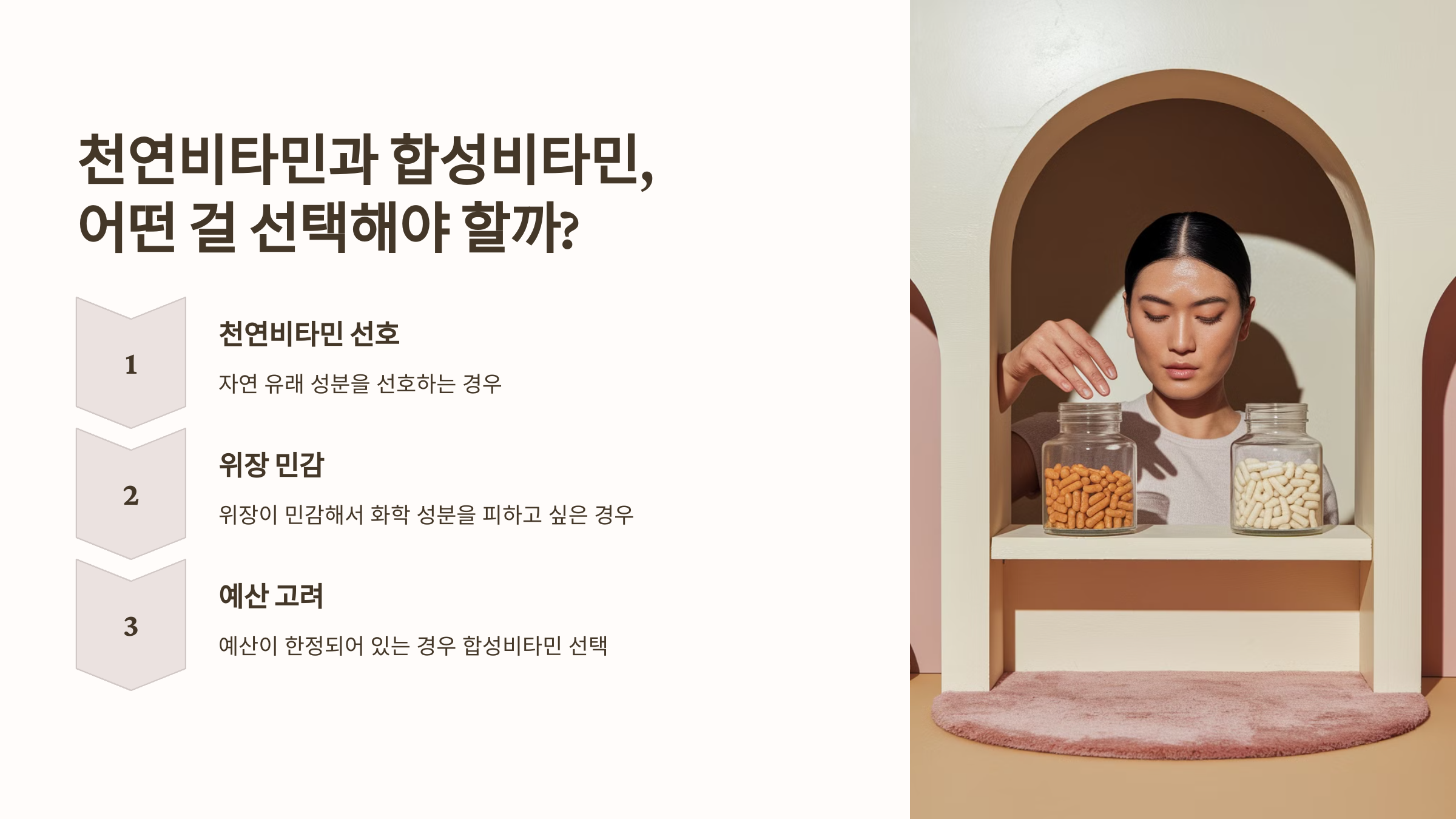 ## 4️⃣ 천연비타민과 합성비타민, 어떤 걸 선택해야 할까?