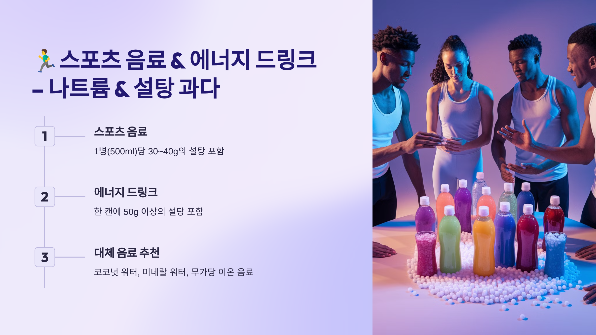 🏃♂️ 스포츠 음료 & 에너지 드링크 – 나트륨 & 설탕 과다