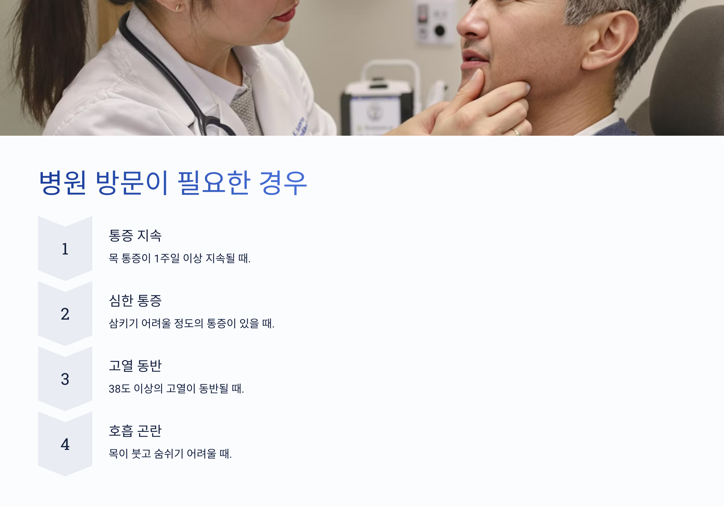 목감기는 대부분 자연적으로 회복되지만, 다음과 같은 증상이 있다면 병원 방문이 필요할 수 있다.