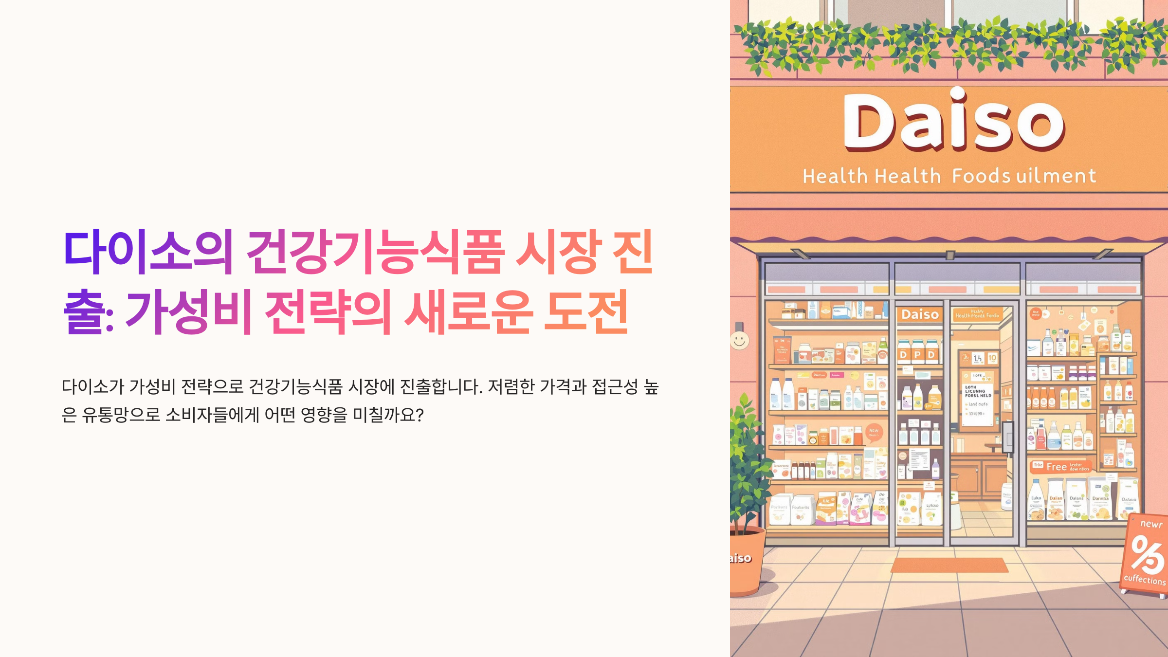 다이소는 화장품 시장에서 성공적인 전략을 펼친 후, 이제 건강기능식품 시장에 도전하고 있습니다.