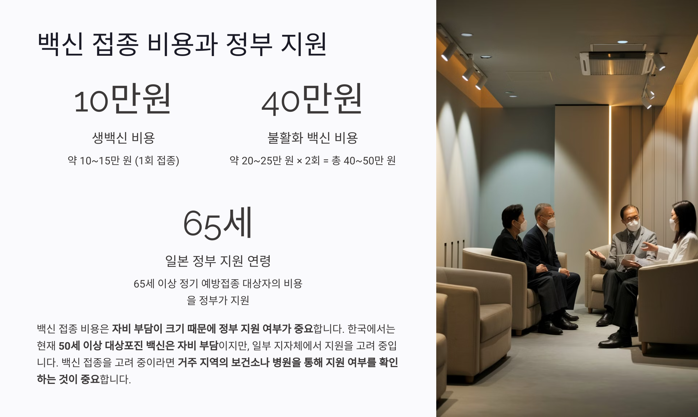 백신 접종 비용은 자비 부담이 크기 때문에 정부 지원 여부가 중요합니다.